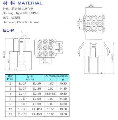 Comprar Enchufe de conector automotriz Tamiya pequeño, carcasa macho EL4.5, 2/3/4/6/9/4,5 Pines, 10 piezas EL, 12/15mm