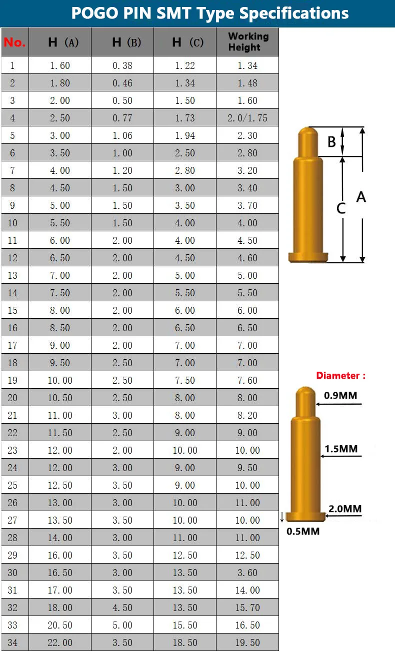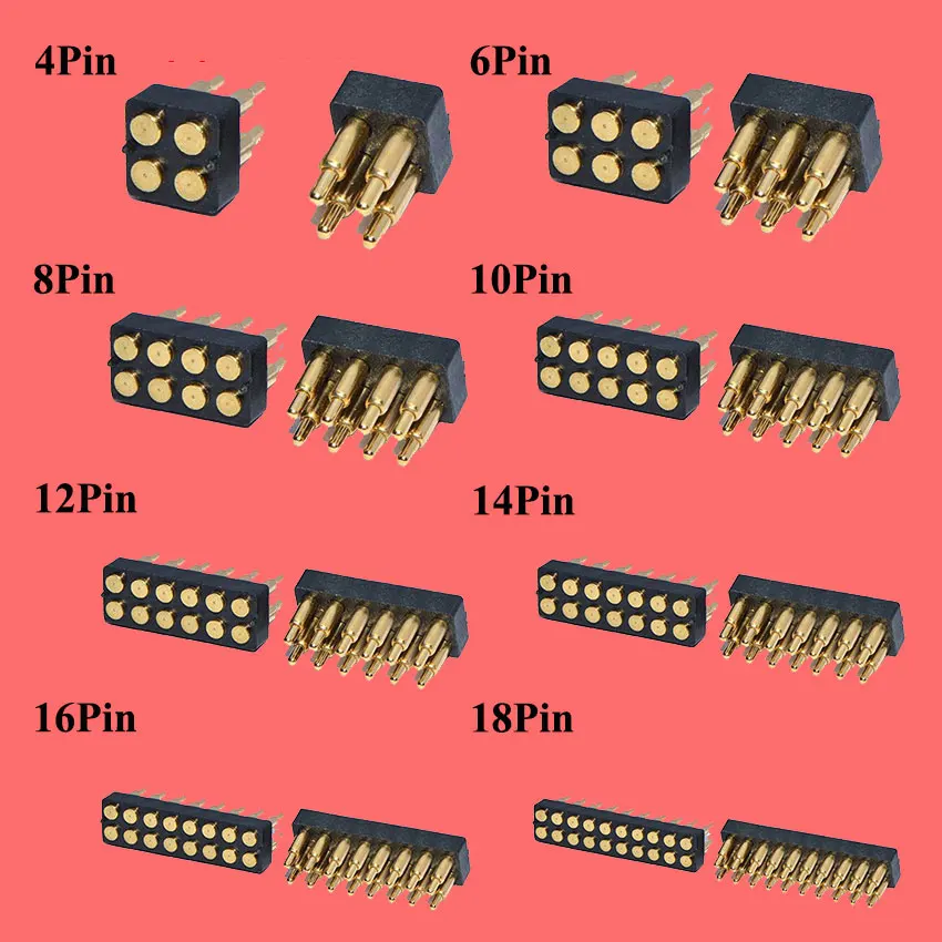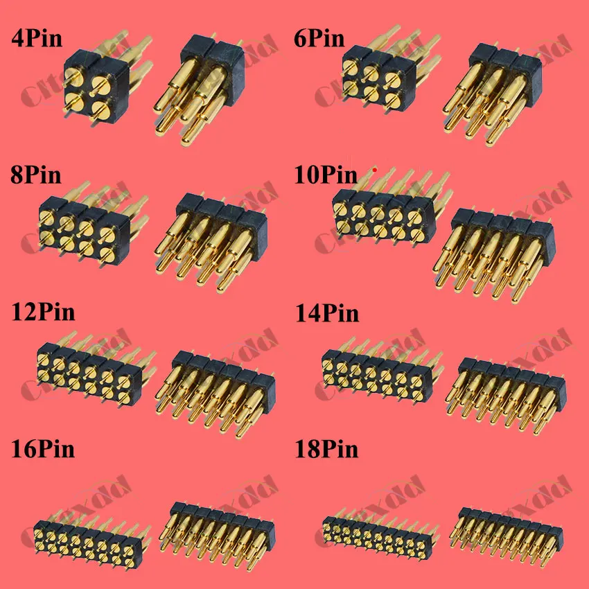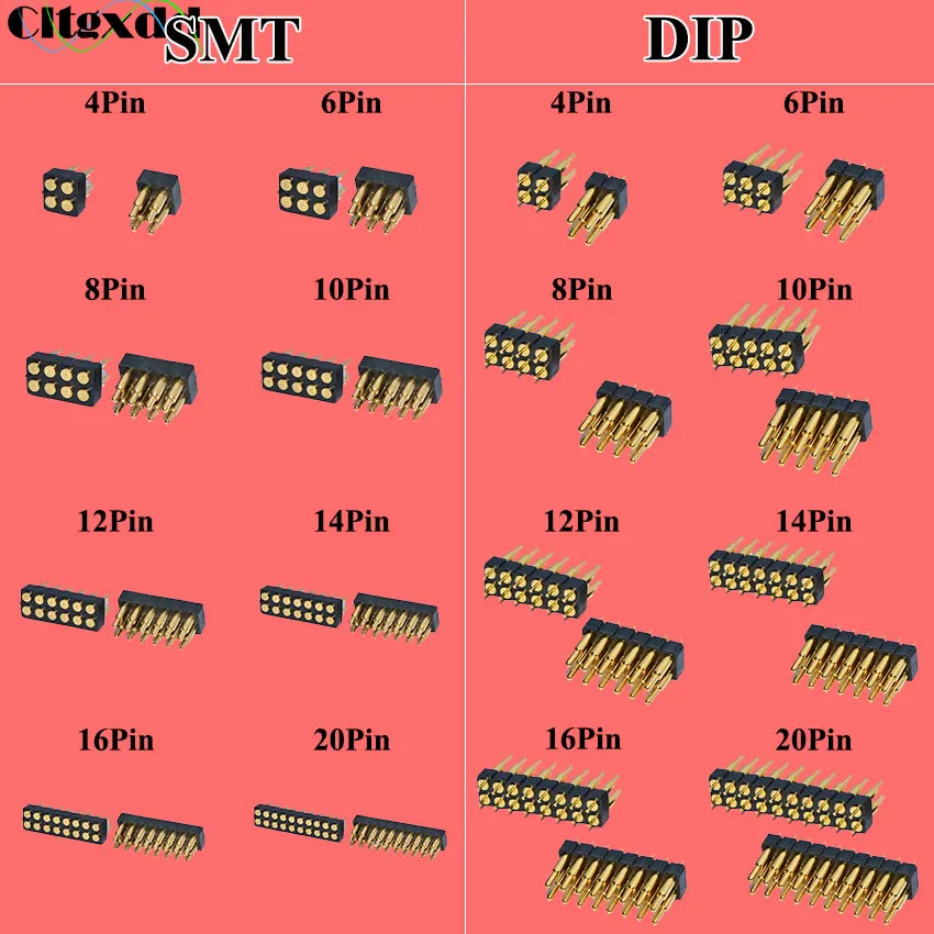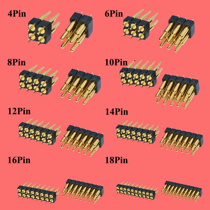 Enchufe de conector Pogo con resorte, 4, 6, 8, 10, 12, 14, 16, 20 pines, doble fila, montaje en superficie SMT DIP, altura de 7,0mm, paso de 2,54mm, 1 ud.