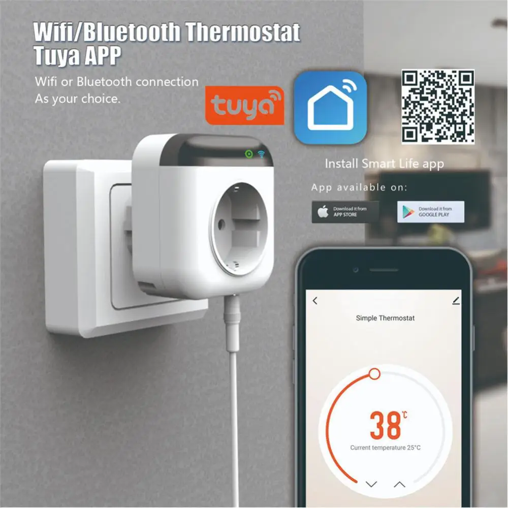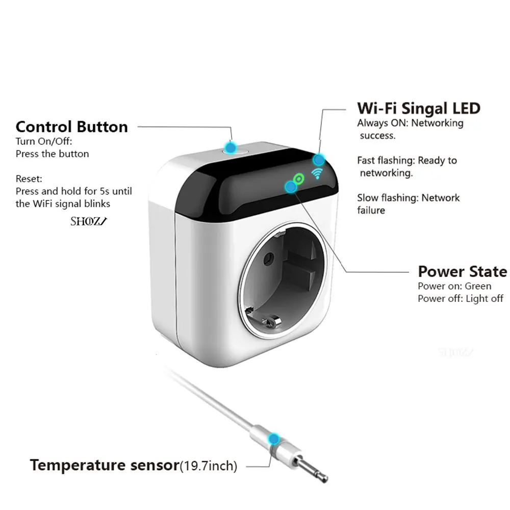 Comprar Enchufe de Control de temperatura inteligente con WiFi, interruptor de sincronización de aplicación móvil, controlador de termostato remoto inalámbrico, enchufe de enchufe, Tuya