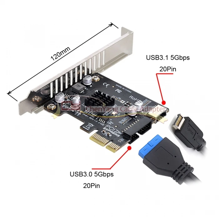 El adaptador es un convertidor para convertir el PCI-E 1x disponible de una placa base en un cabezal USB 3,1.