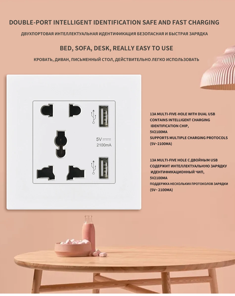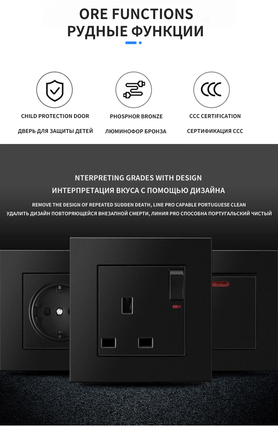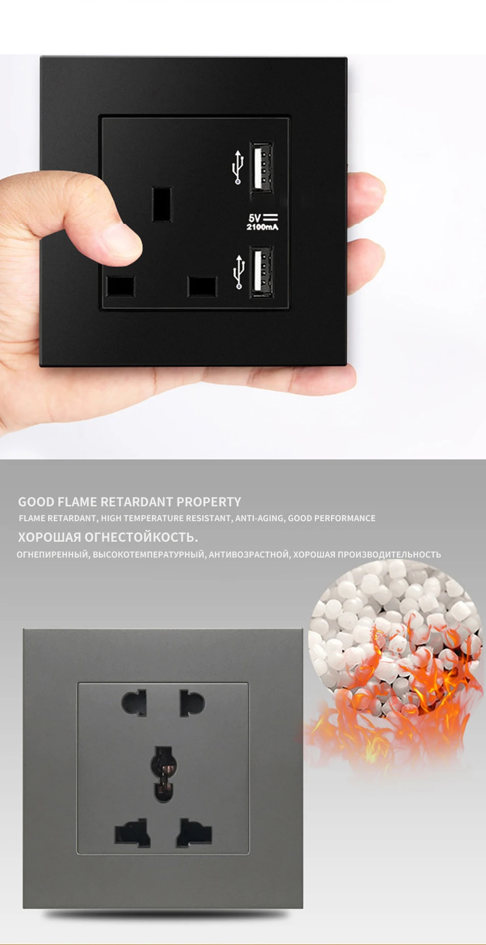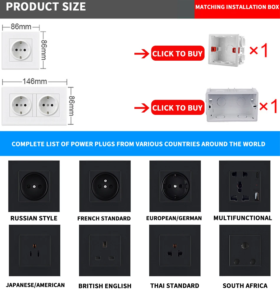 Enchufe eléctrico estándar europeo, alemán y ruso, Panel de toma de corriente de pared 16A, toma de corriente de agujero redondo europeo y ruso, CA 250V, negro