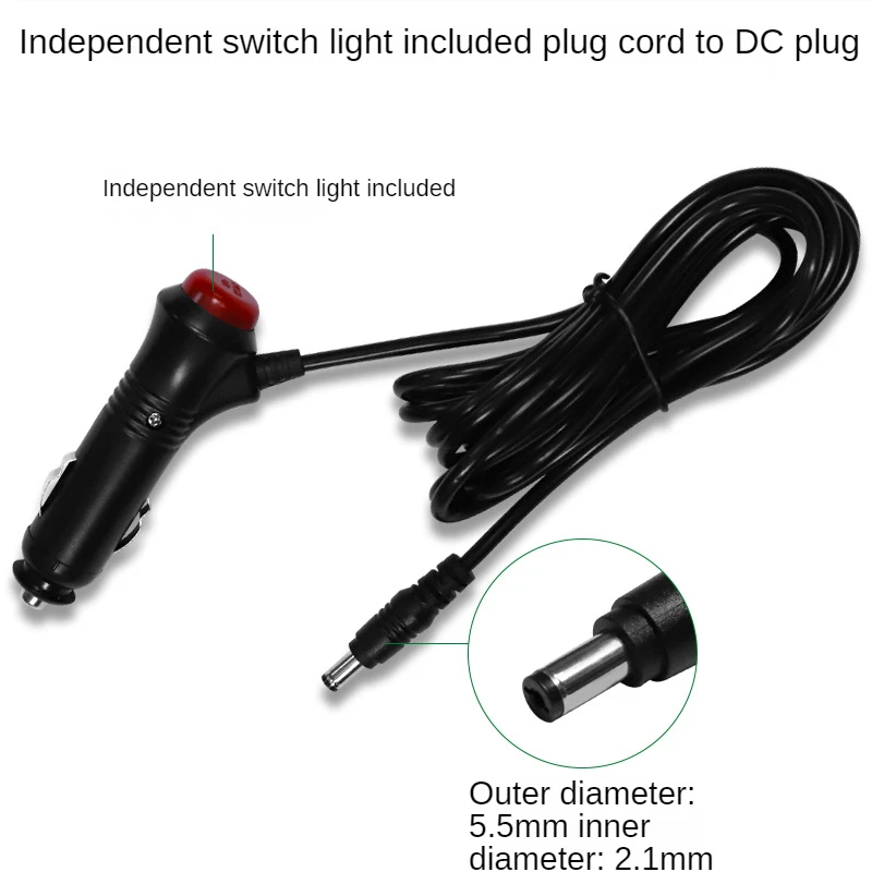 Comprar Enchufe para encendedor de cigarrillos de coche, Cable de alimentación para Monitor/cámara de coche, 3M, 12V, 24V, CC, 2,1x5,5mm