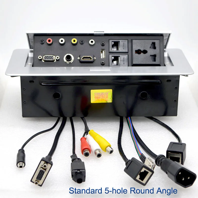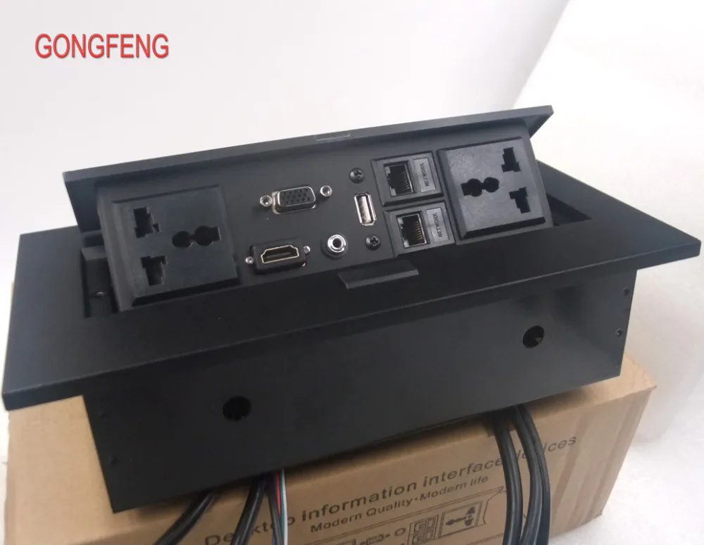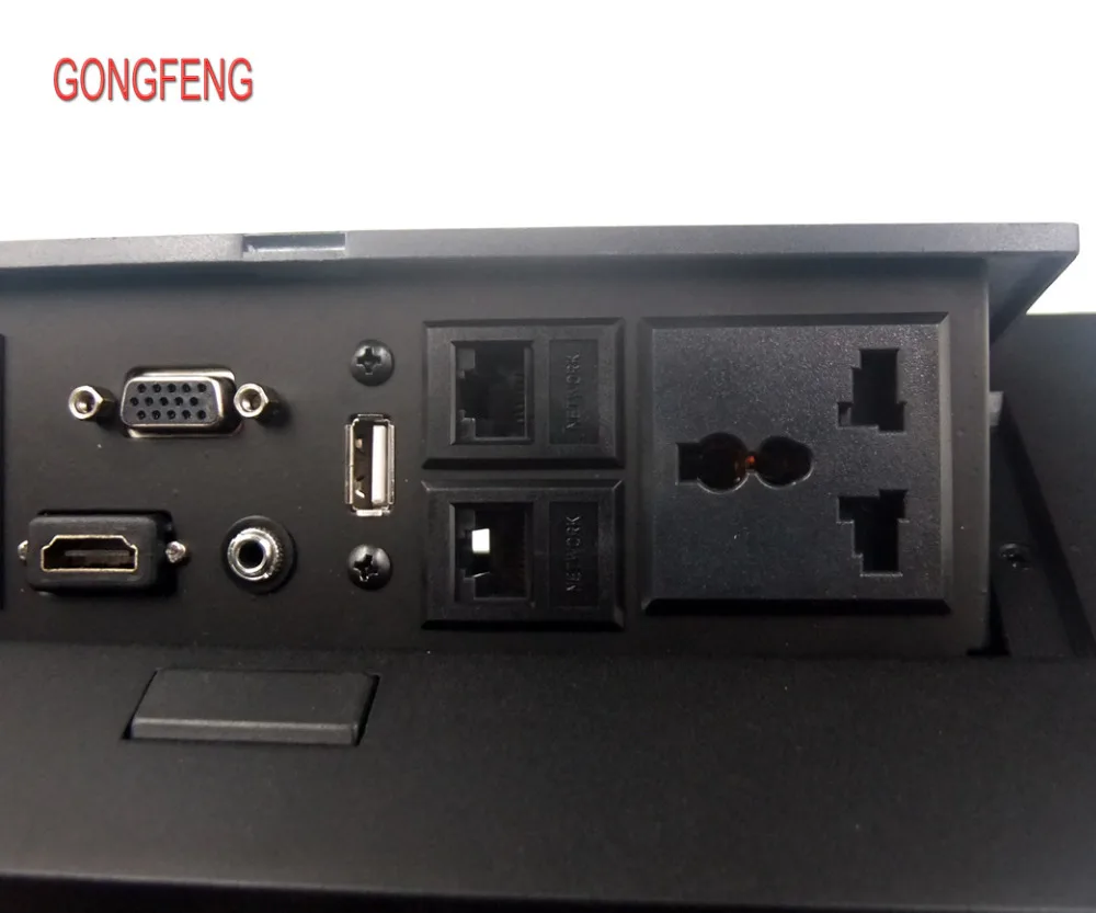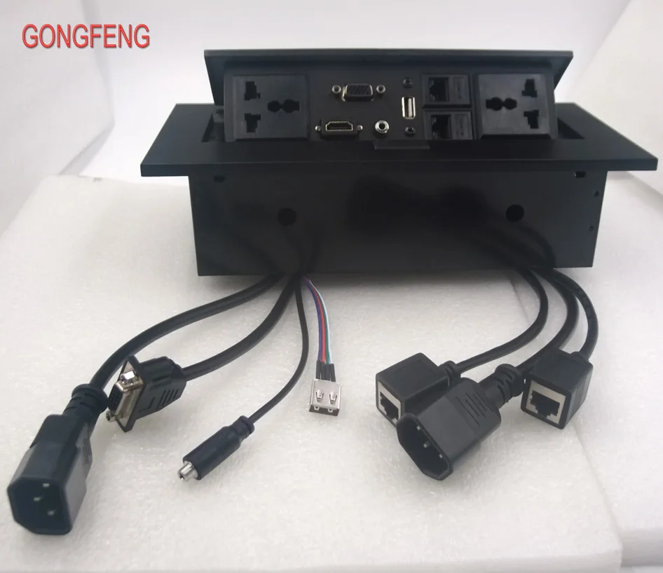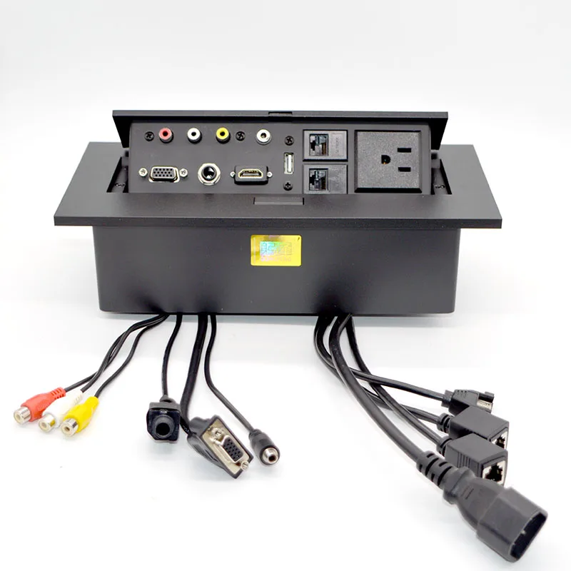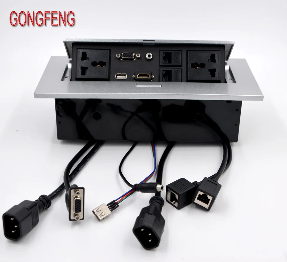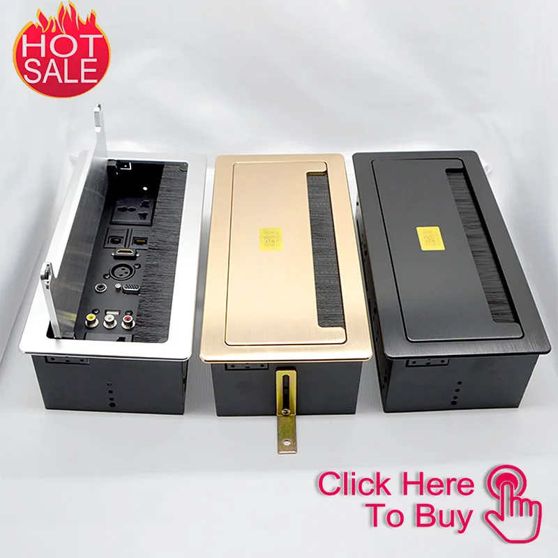 Comprar Enchufe de escritorio tipo oculto, conector de alimentación emergente de mesa con VGA, USB 3,5, Audio, Panel de aluminio, caja de conexión gratuita, conferencia de oficina