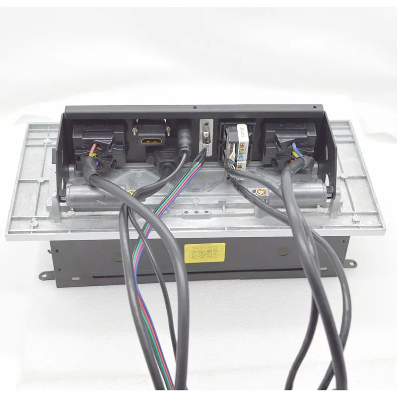 Enchufe de escritorio tipo oculto, toma de corriente emergente de mesa con VGA USB 3,5, Panel de aluminio de Audio, caja de conexión gratuita para conferencias de oficina