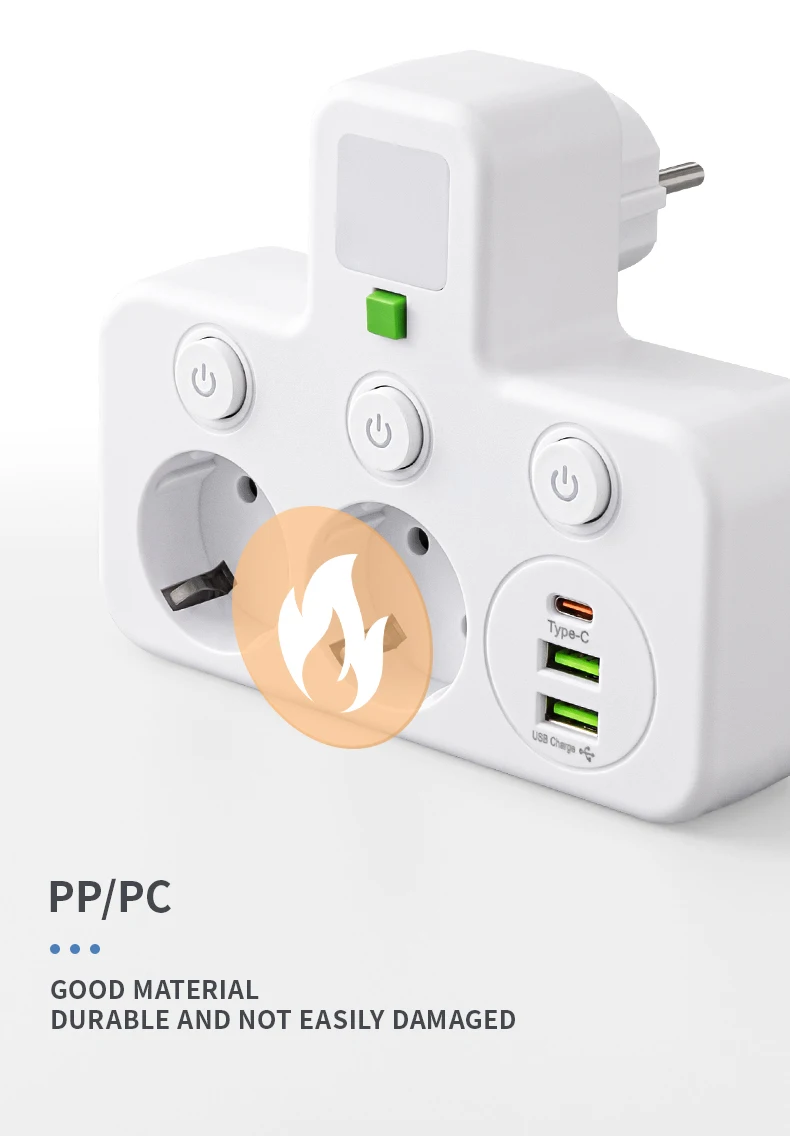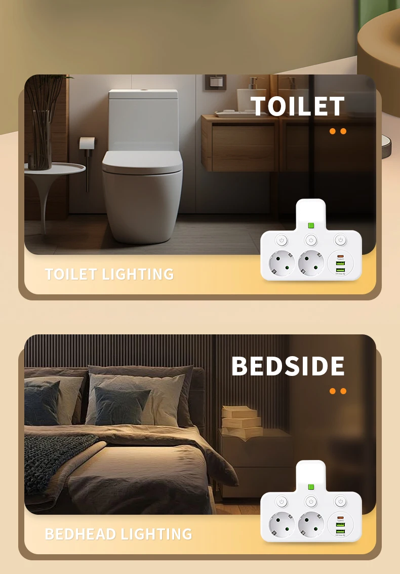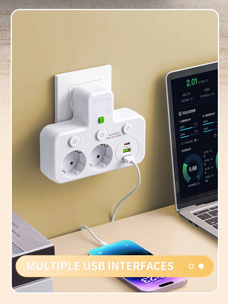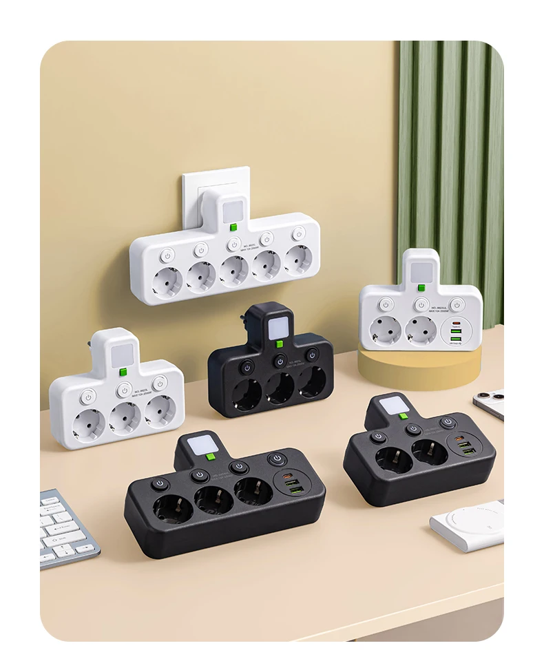 Enchufe de extensión para el hogar: Enchufe de oficina con enchufe/bombra de alimentación inteligente (UE)/luz nocturna con interruptor de control