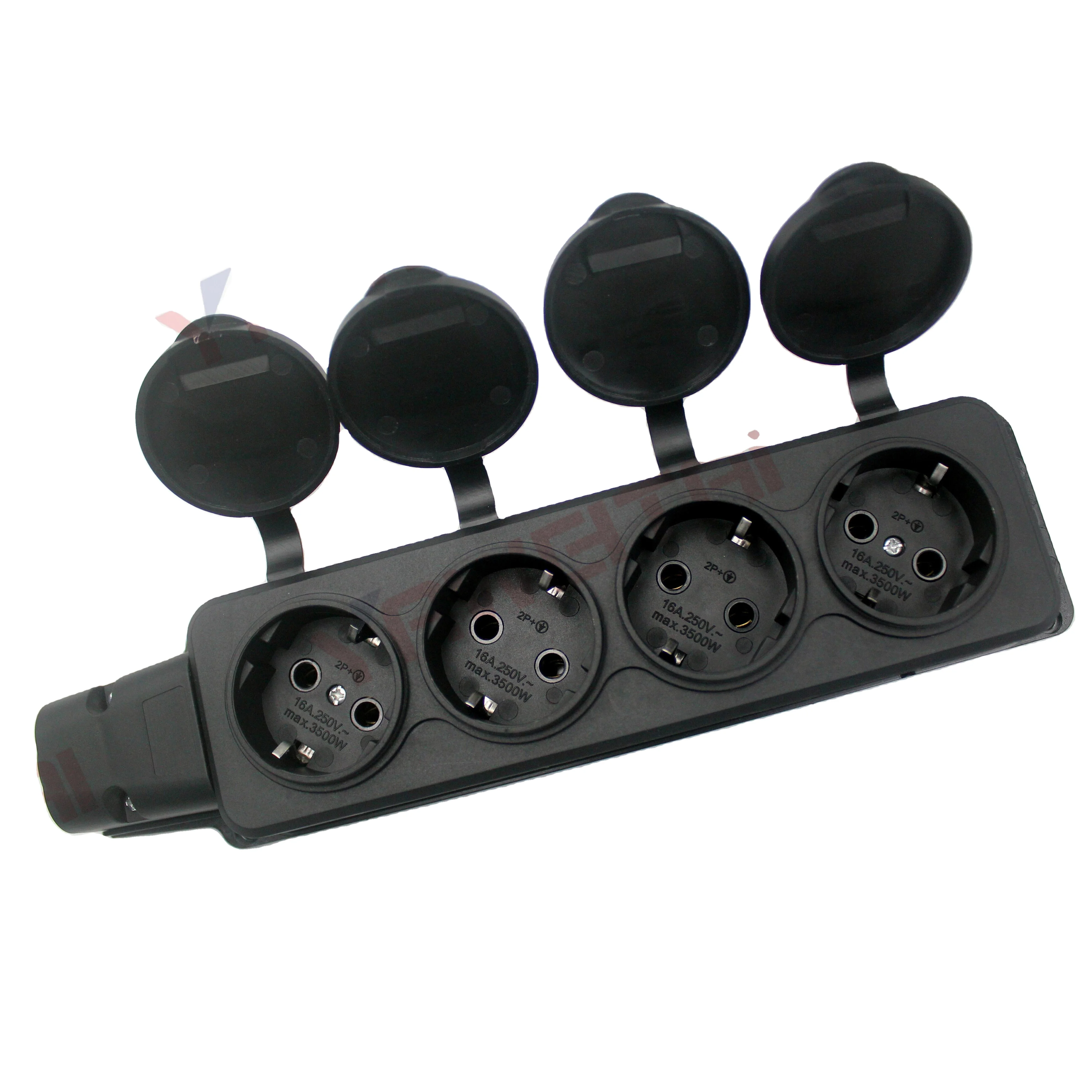 Comprar Enchufe de extensión Schuko de 4 bandas con cubierta, enchufe europeo impermeable con puesta a tierra IP54