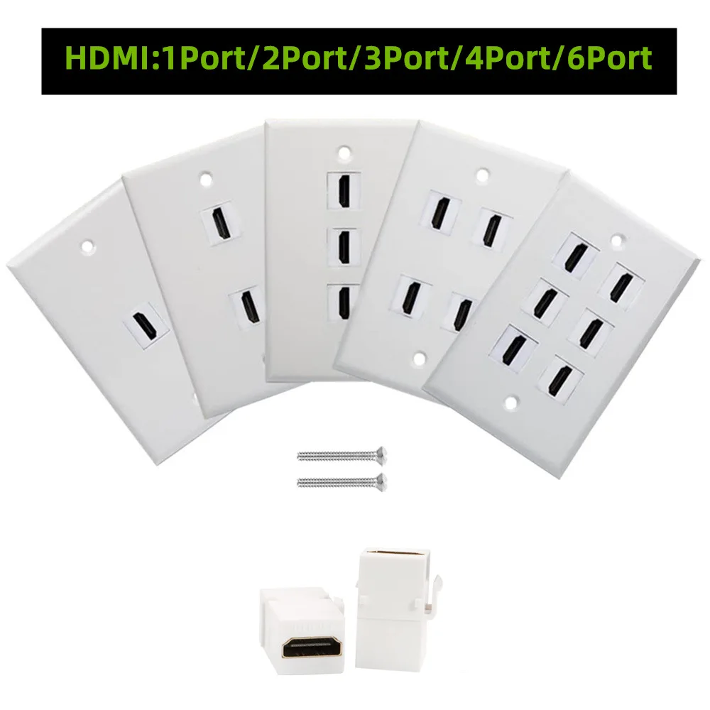 Enchufe extensor de salida, acoplador de Panel frontal de pared de placa hembra a hembra, HDMI, blanco, 1, 2, 3, 4, 6 puertos, nuevo