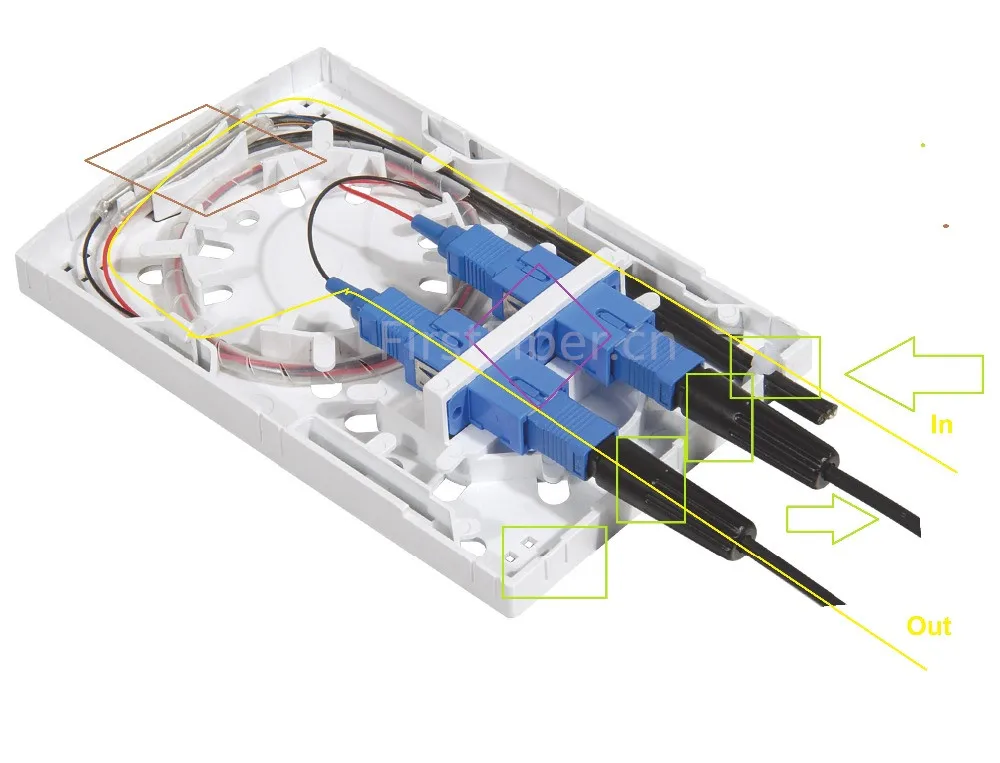 FirstFiber ODN FTTH 2 núcleos caja de terminación de fibra 2 puertos 2 canales caja divisora de toma de fibra Interior Exterior fibra ópticaPara cualquier tipo o compra a granel, póngase en contacto con: WISE (@)firstfiber.cn