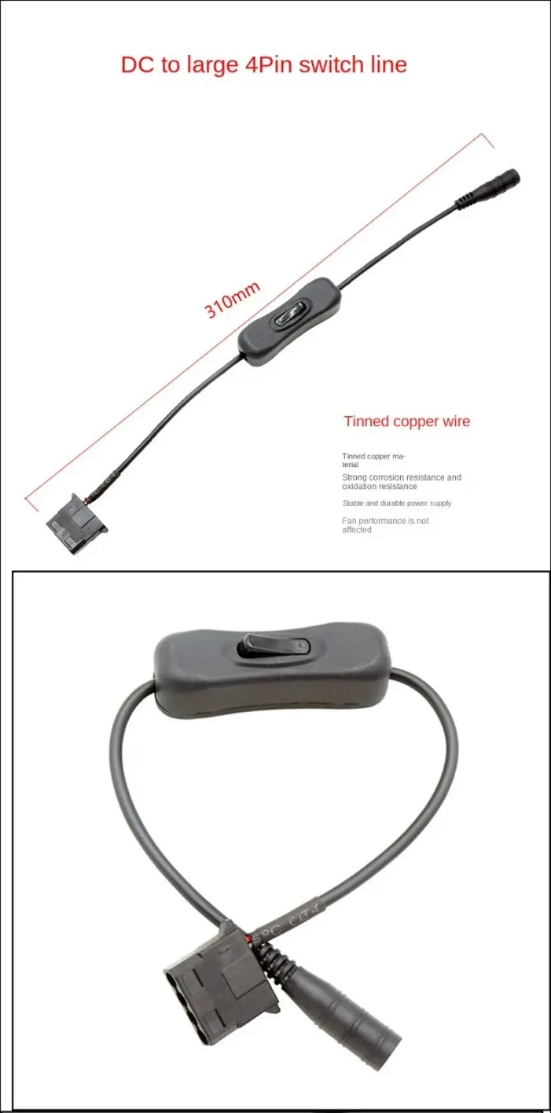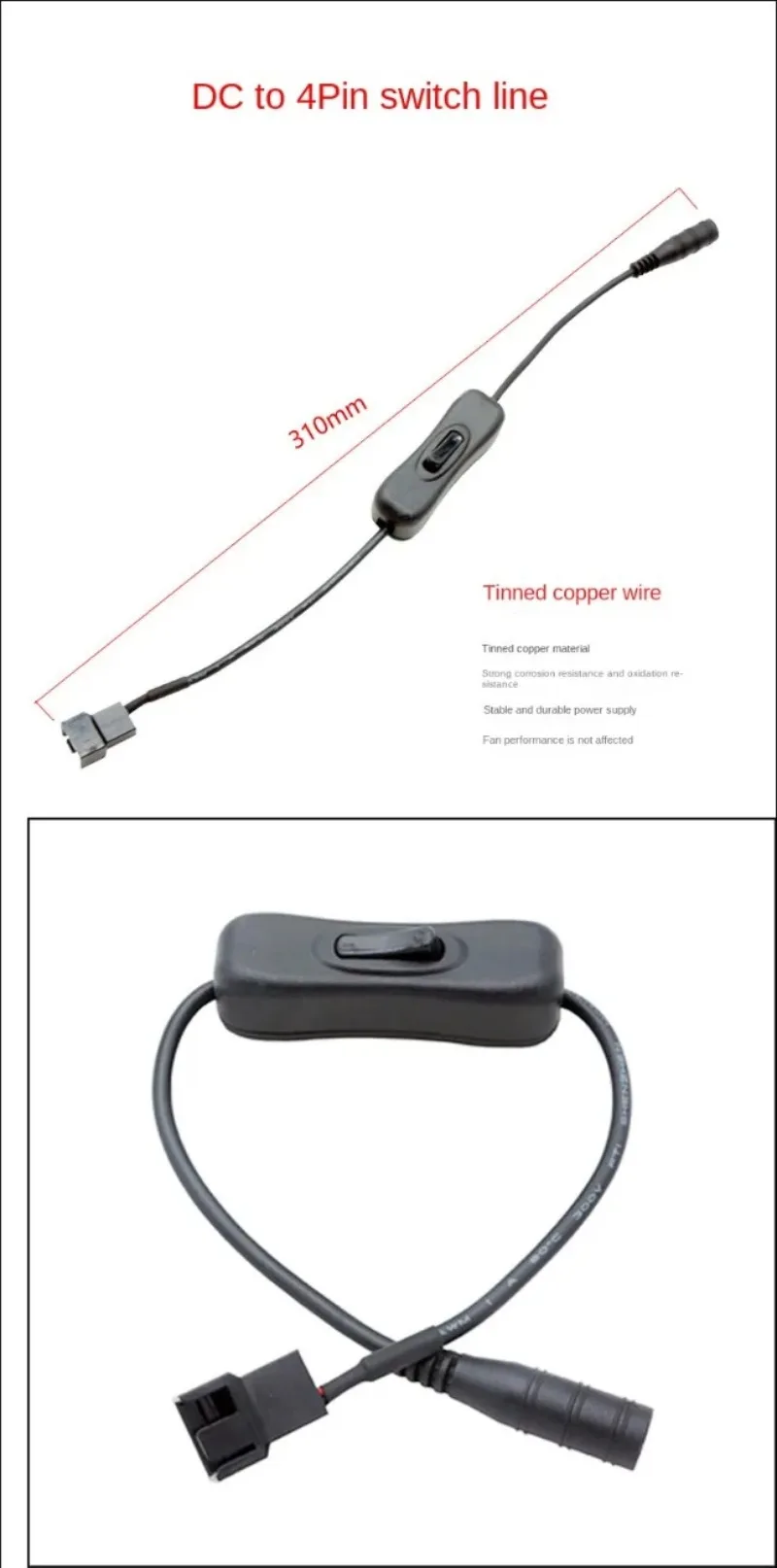 【Nombre del producto】: DC5521 a cable de interruptor de ventilador de computadora Longitud del producto: 30 cm Modelo de cable: 2464 22AWG 【Material aislante】: aislamiento de PVC 【Especificación del conductor】: 17 * 0,14TS 【Material del conductor】: cobre puro 【Diámetro exterior del cable】: OD3,5 mm Temperatura nominal: 80℃ [Color del cable]: Negro Peso del producto: 20 g 【Función del producto】: Cambie el ventilador de la CPU del chasis a una interfaz de CC para obtener fuente de alimentación.