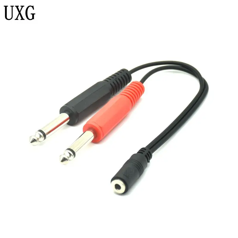 20cm 3.5mm Female Plug to 2×6.35mm TRS Mono Male Jack Audio Socket Adapter Cable;