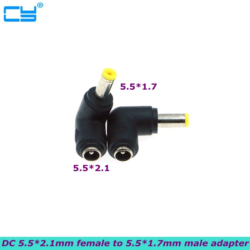 Comprar Enchufe hembra 5,5x1,7mm macho 5,5x2,1mm, adaptador de conector de corriente CC, codo de 90 grados, 5,5x1,7 a 5,5x2,1
