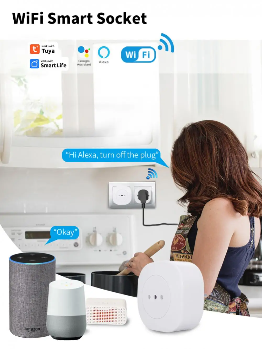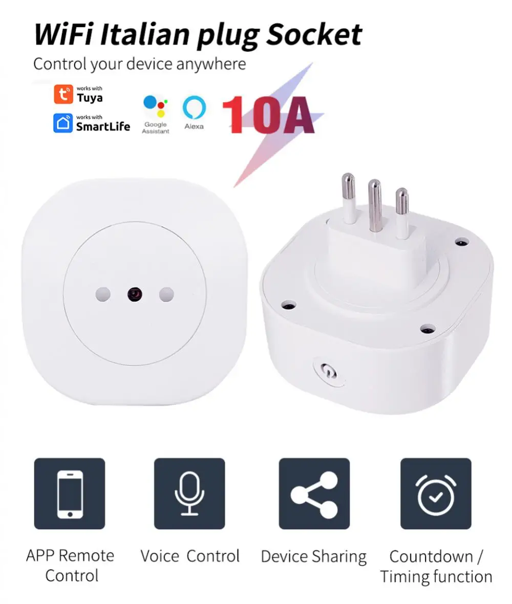 Comprar Enchufe inteligente Tuya con WiFi, toma de corriente italiana de 16A/10A, Control de voz, sincronización compartida para Alexa Home