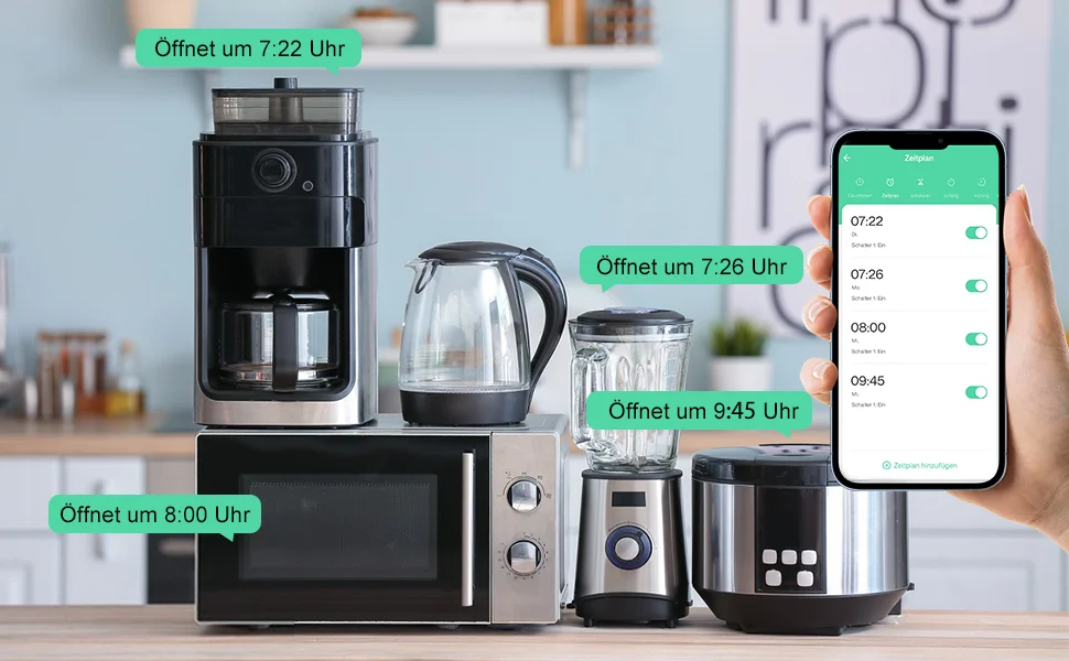 Horario: Matte Smart Sockets Ajuste el horario y la rutina según sus necesidades a través de la aplicación.Inicie sesión con la misma cuenta que su familia y los dispositivos se podrán compartir.