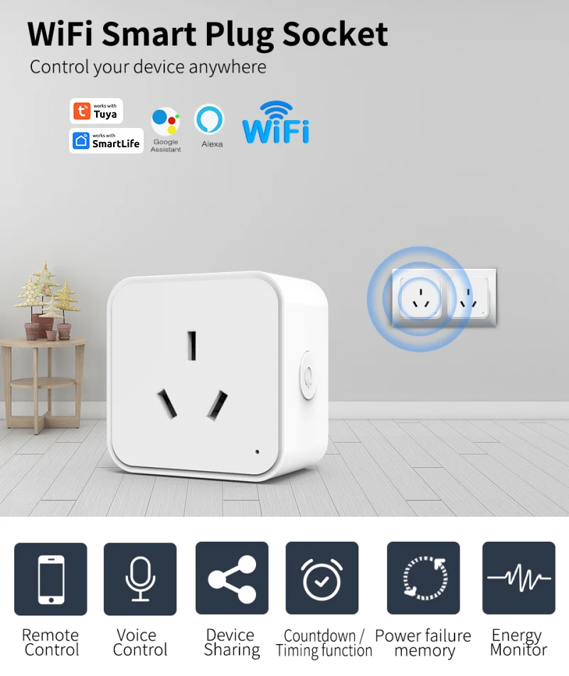 Comprar Enchufe inteligente con Wifi para el hogar, minienchufe con función de sincronización, funciona con la aplicación Tuya Smart Life, Alexa y Control por voz