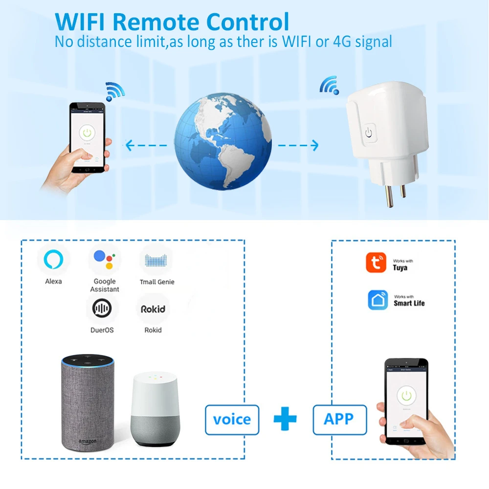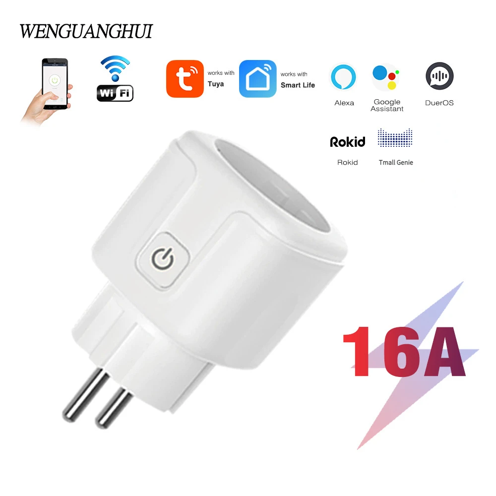 Comprar Enchufe inteligente WiFi EU, Monitor de potencia de 16A, 220V, luces remotas, Control de calentador de agua, funciona con la aplicación Tuya Smart Life