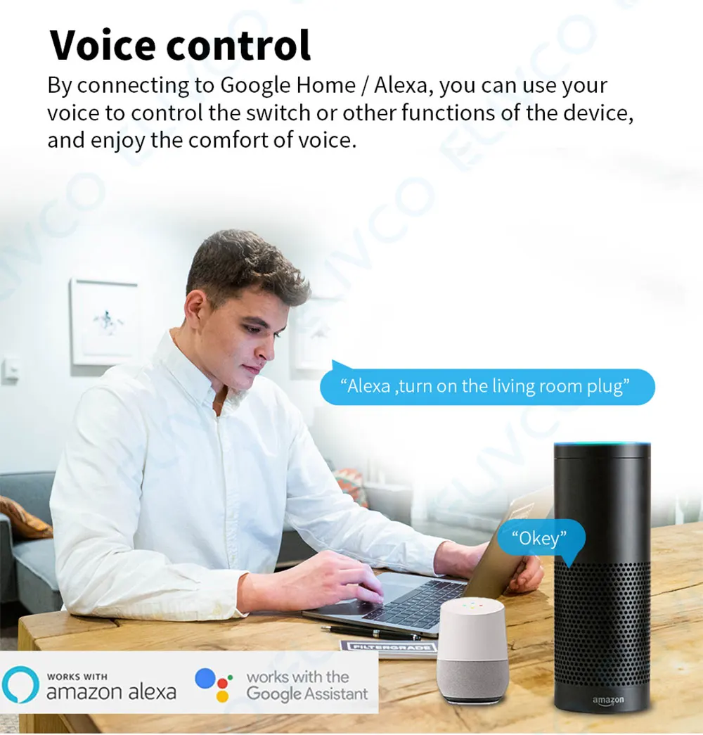 • Control de voz:Controle sus dispositivos eléctricos con su Voz usando Alexa o Google Home.