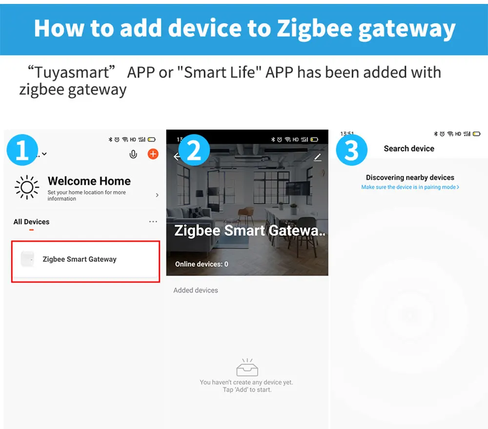 La puerta de enlace Zigbee actúa como un puente de conexión, y los dispositivos Zigbee conectados y otros dispositivos WiFi en la aplicación ahora forman el enlace completo de la casa del Centro Inteligente.