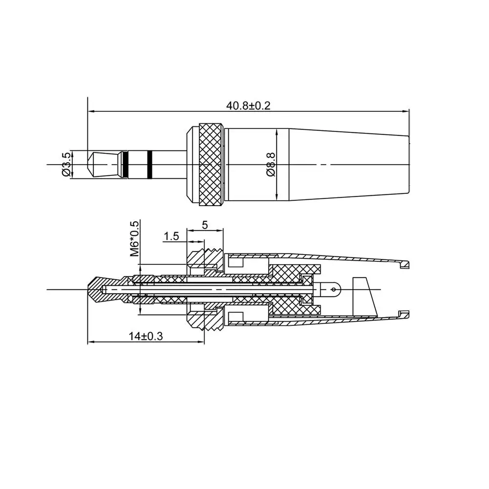 La carcasa de interfaz de 3,5mm está chapada en cobre con pintura negra. Chapado en oro del enchufe