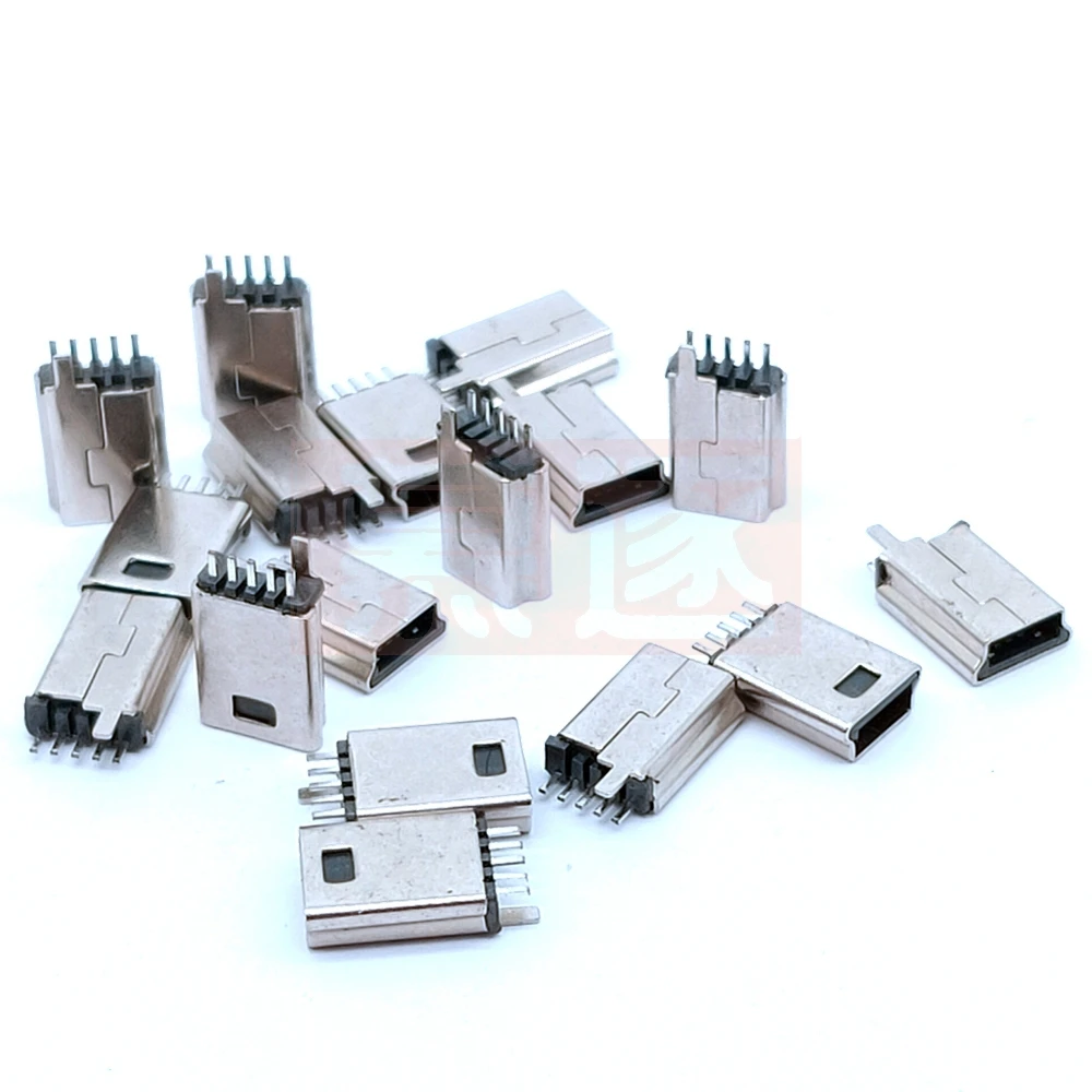 10 unids/lote DIY MINI-USB enchufe macho Mini enchufe USB cabeza macho en forma de T 5P enchufe recto SMD férula vertical