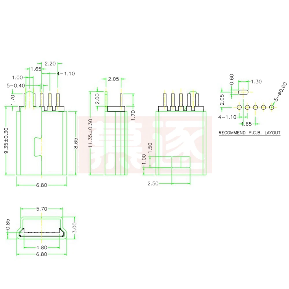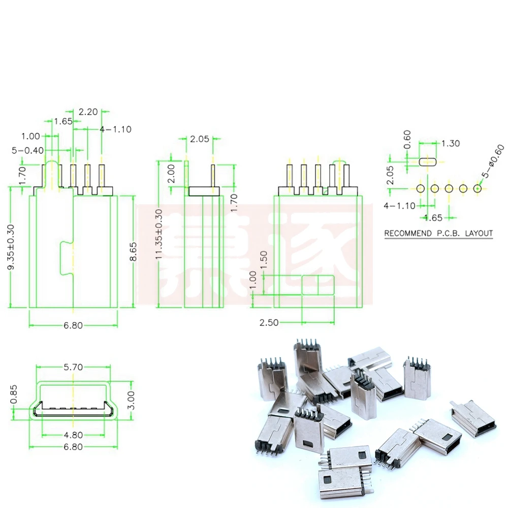 Comprar Enchufe macho en forma de T para manualidades, Mini conector USB con cabeza macho 5P, recto, férula vertical SMD, MINI-USB, 10 unids/lote