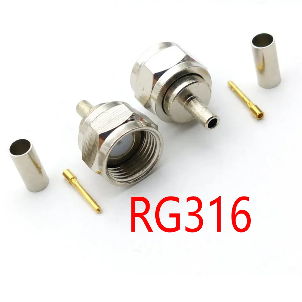 Comprar Enchufe macho F de latón de 75 Ohm, Conector de crimpado recto RG174 LMR100 RG316 RF, 100 piezas, venta