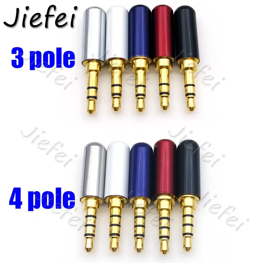 Comprar Enchufe macho de latón de 3,5mm, 1/8 ", 3 y 4 polos con Clip + conector trasero de carcasa de latón, Conector de Audio chapado en oro para auriculares estéreo DIY