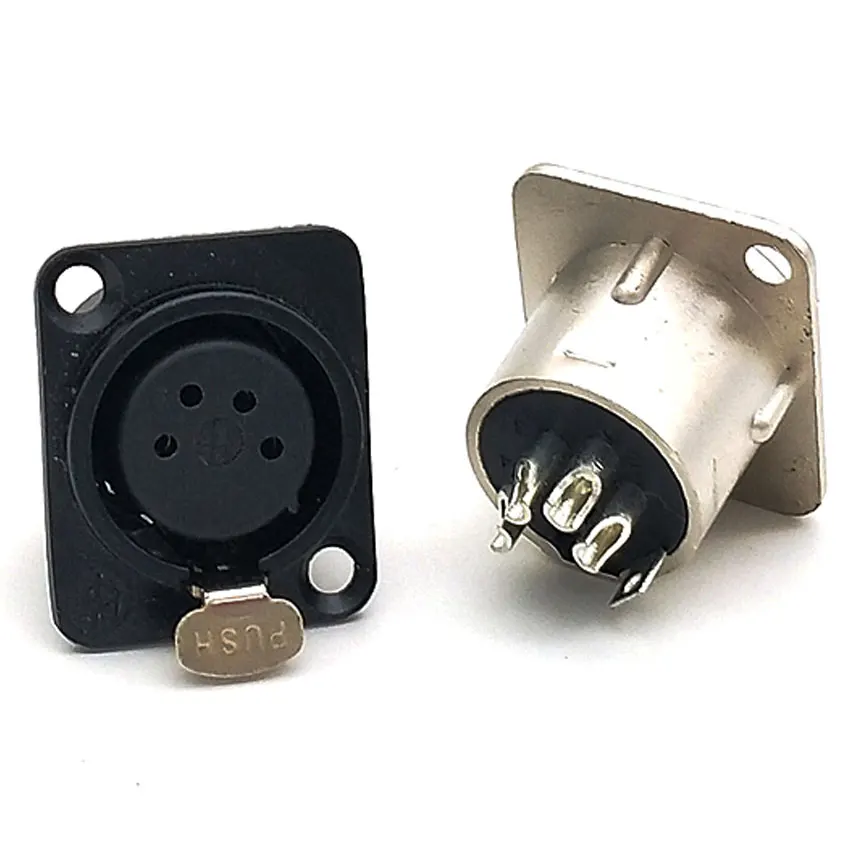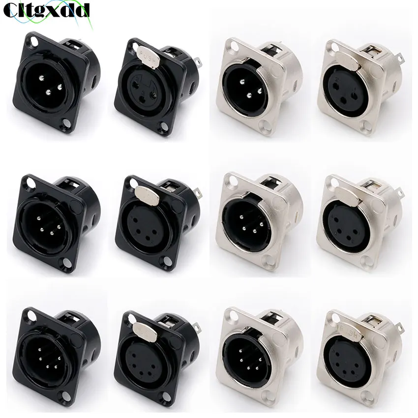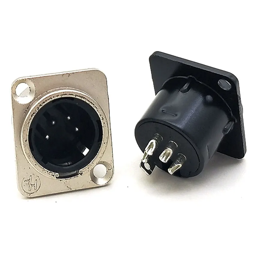 Enchufe macho XLR hembra, conector de montaje en Panel, carcasa de aleación de Zinc, contactos de cobre, carcasa plateada y negra, 3 pines, 4 pines, 5 pines, 1 unidad