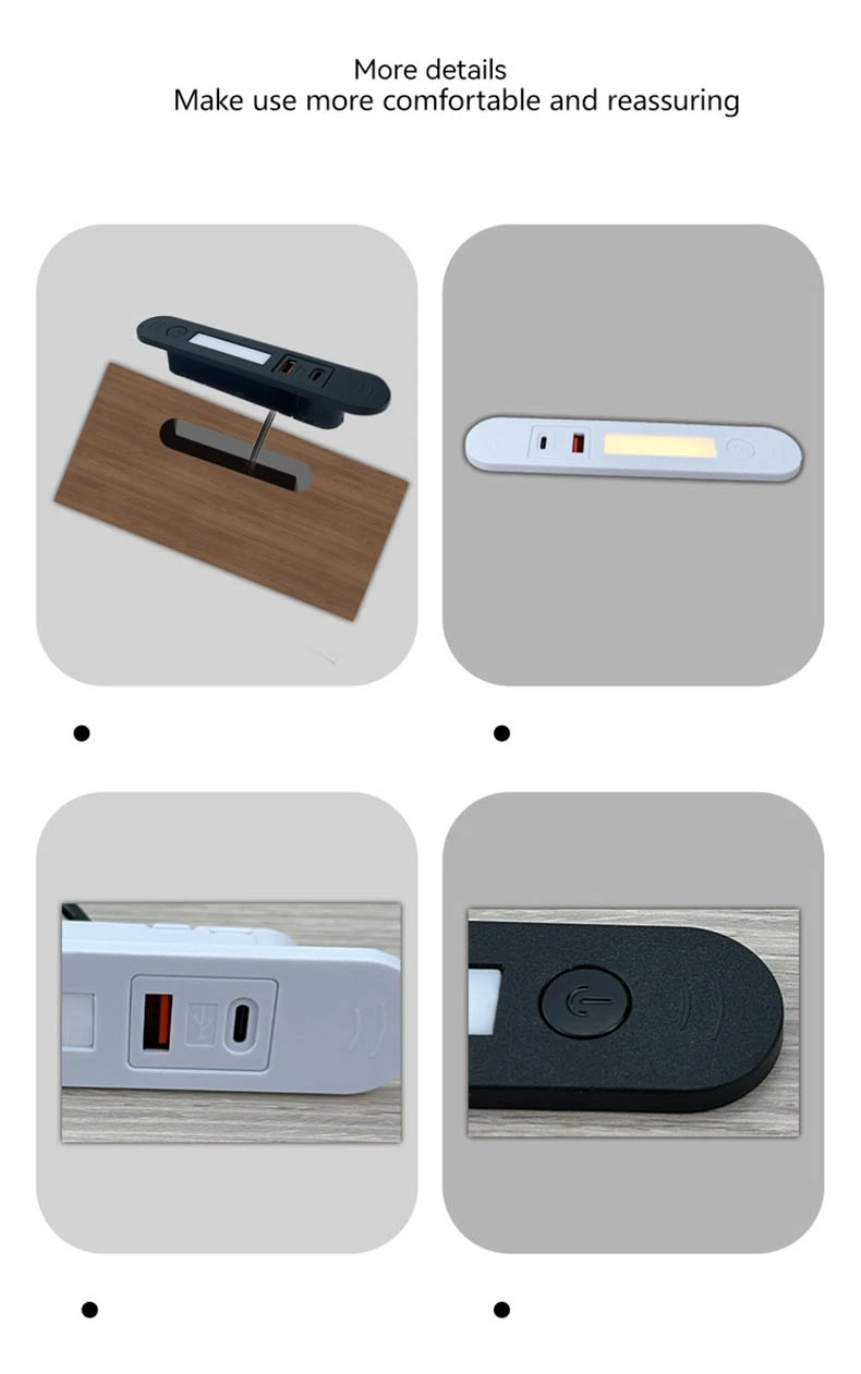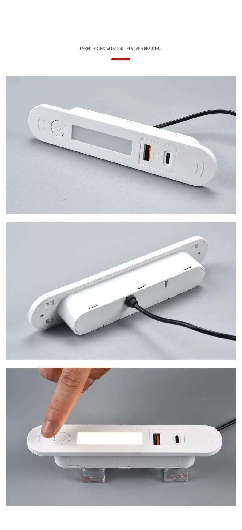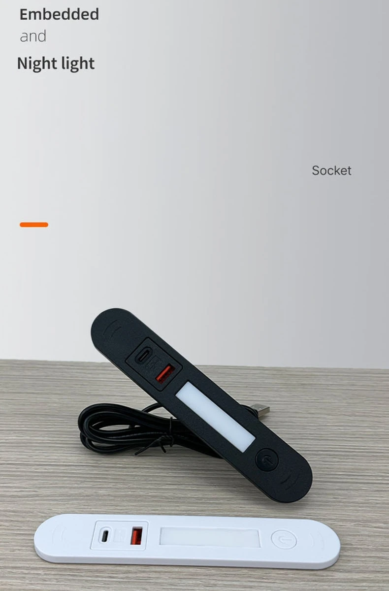 Comprar Enchufe múltiple oculto, toma de corriente oculta integrada, 1 USB A y 1 tipo C con luz nocturna, mesita de noche, cargador integrado para teléfono móvil