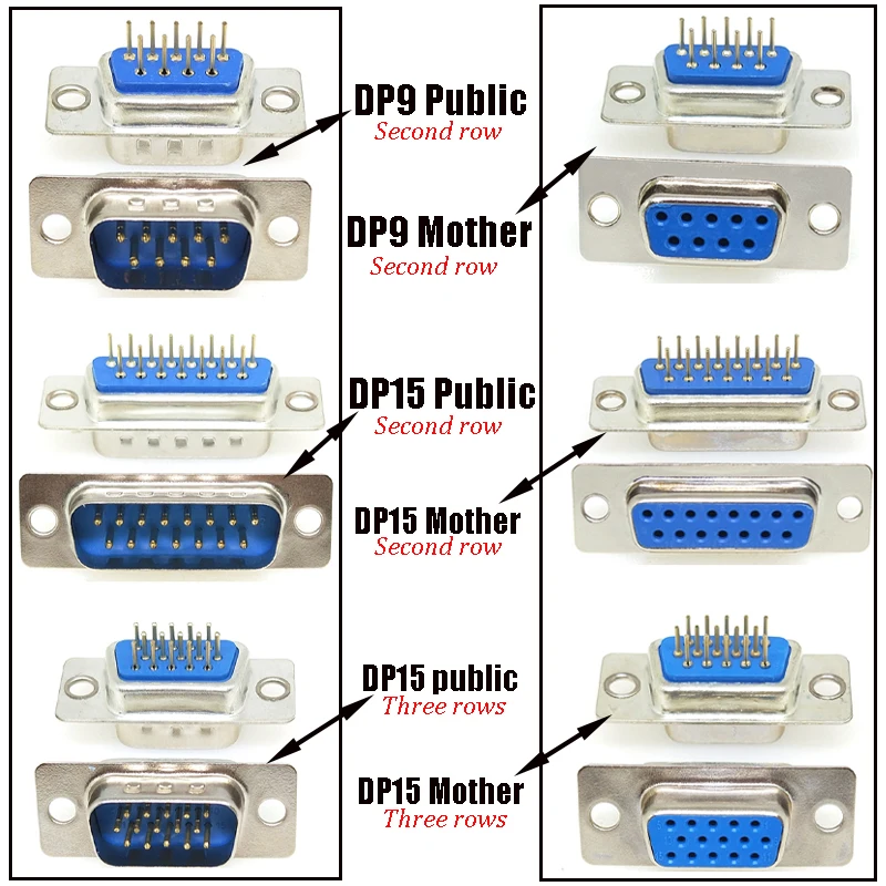 Enchufe de puerto serie de 2 piezas DP9/DP15 dos/tres filas macho/hembra RS232DB cabeza Puerto COM Placa de soldadura enchufe de placa