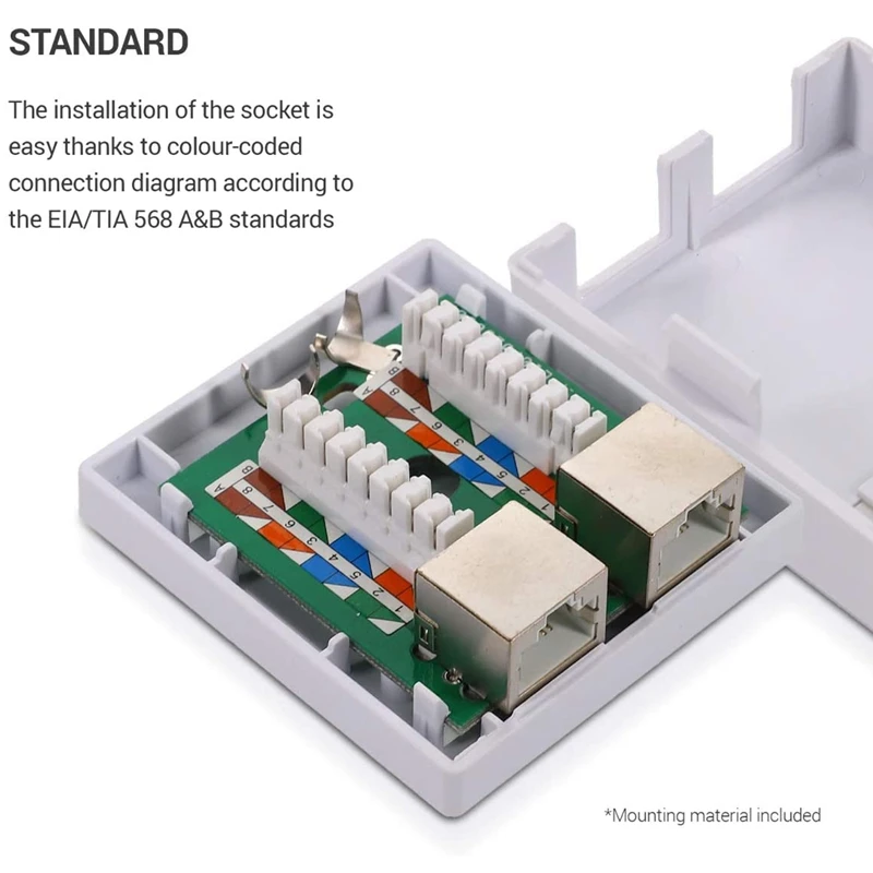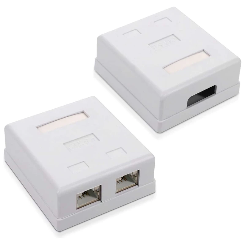 Enchufe de red RJ45-Enchufe de pared doble montado en superficie blindado con puerto de cable LAN Ethernet CAT6A para cable de redRed: La toma de red RJ45 le permite conectar computadoras, computadoras portátiles, PC, impresoras, televisores, consolas de juegos, etc. a la red. Es un complemento perfecto para ayudarlo a instalar cables de red o instalar cables de manera óptima.