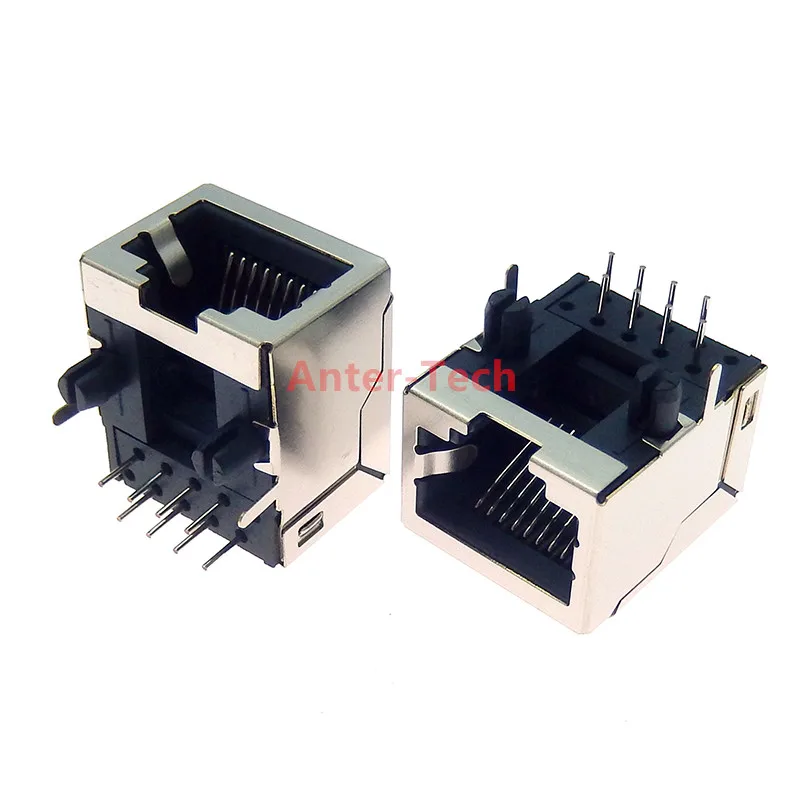 RJ45/18,3 enchufe de red no iluminado 8P8C PCB Pines de montaje horizontal Interfaz Ethernet blindada Módulo de red de Internet de 90 grados