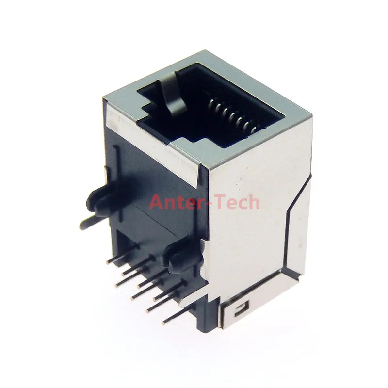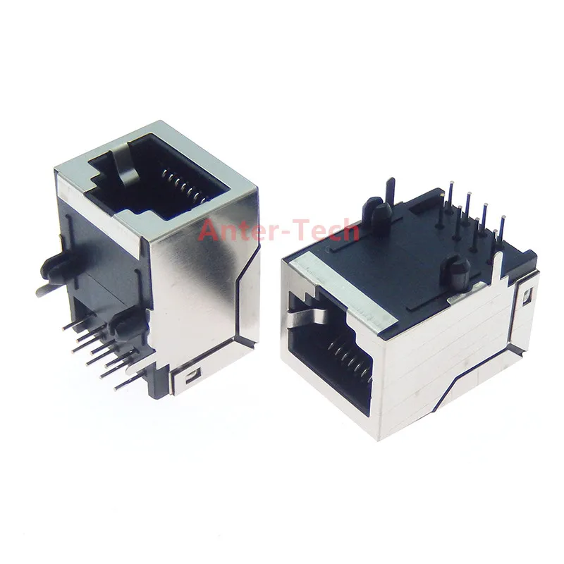 Enchufe de red no iluminado RJ45/RJ45, pines de montaje horizontal PCB 8P8C, interfaz Ethernet blindada, módulo de Internet de red de 90 grados