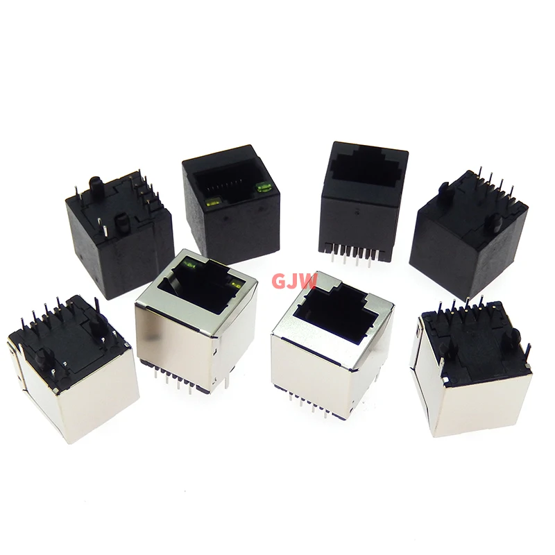 Comprar Enchufe de red Vertical RJ45, 10 piezas, 180 grados, con escudo y lámpara, interfaz de Cable de red 5224-8p8c, conector en línea