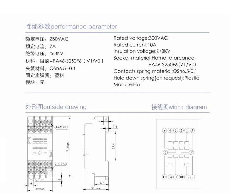 Material del resorte de los contactos: Qsn6.0-0,1