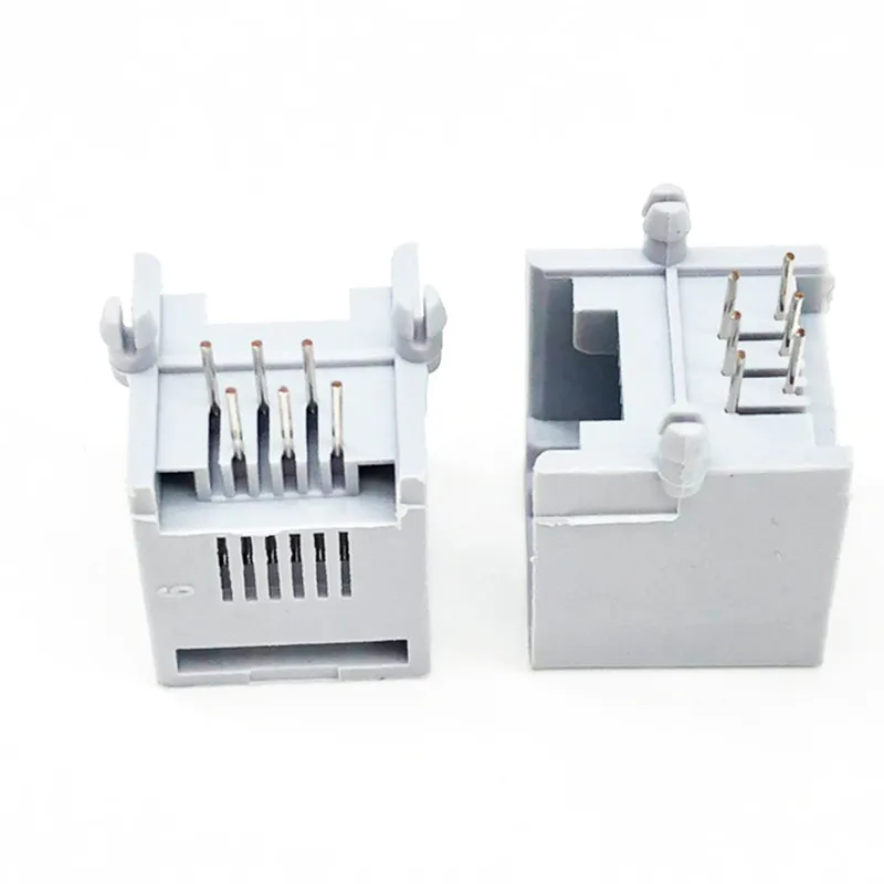 100 piezas RJ11 socket gris RJ11 teléfono 90 grados 6pin cristal hembra 6p6c socket