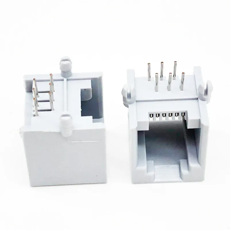 100 piezas RJ11 socket gris RJ11 teléfono 90 grados 6pin cristal hembra 6p6c socket