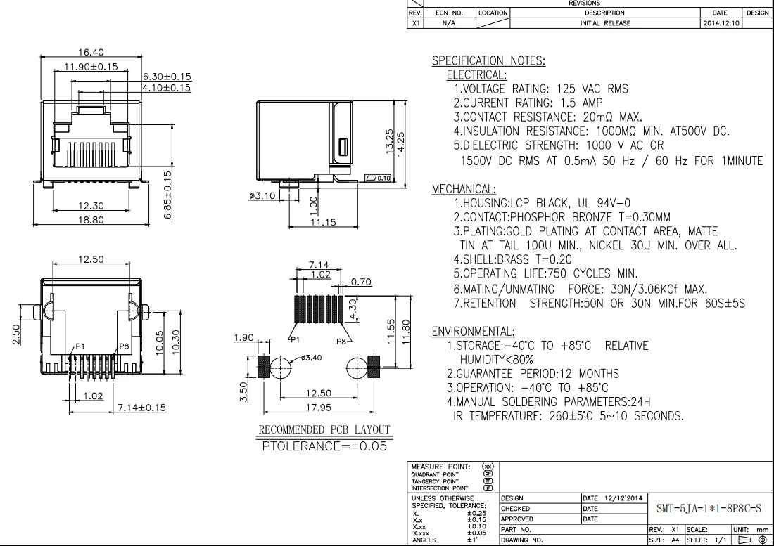 Comprar Enchufe Rj45 totalmente de cobre con protector de correa ligera con metralla 8P8C interfaz de red Ethernet PCB hembra.