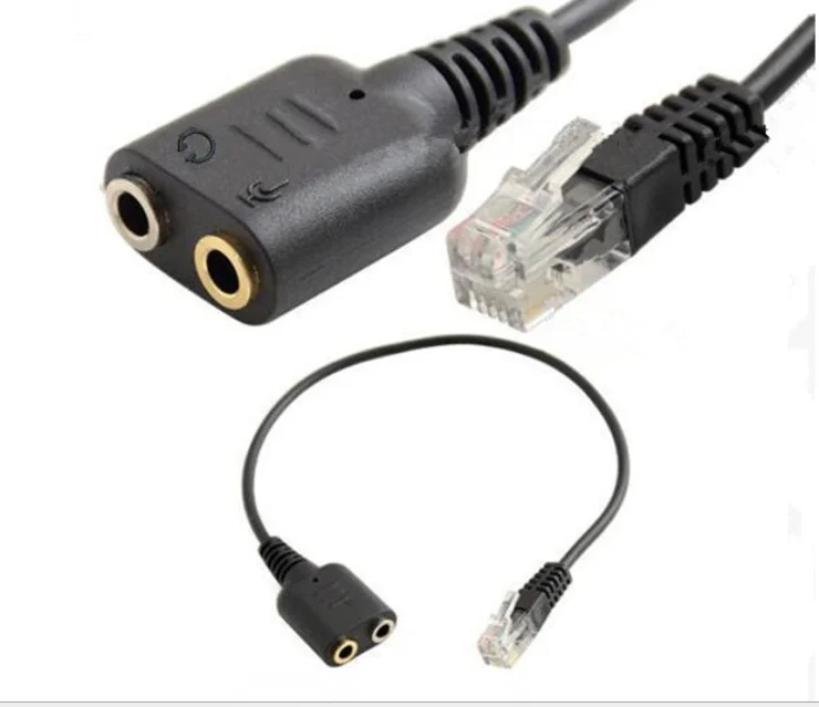 Auriculares de ordenador a auriculares de teléfono dual de 3,5mm a cable adaptador de auriculares de cristal RJ9;