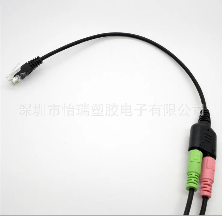 Auriculares de ordenador a auriculares de teléfono dual de 3,5mm a cable adaptador de auriculares de cristal RJ9;