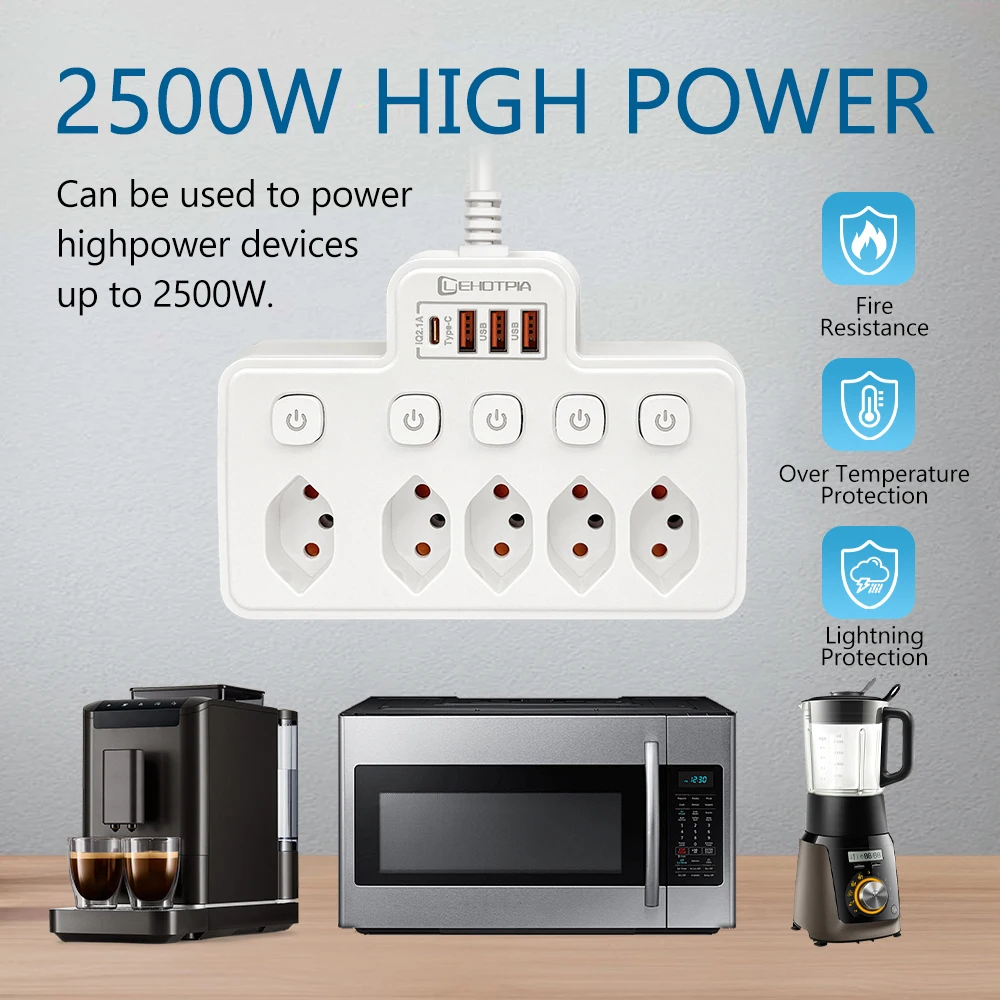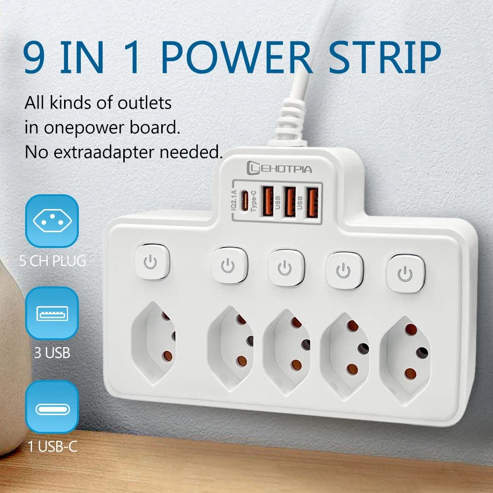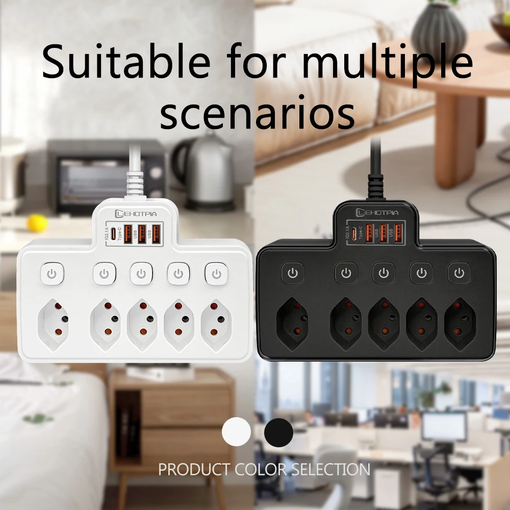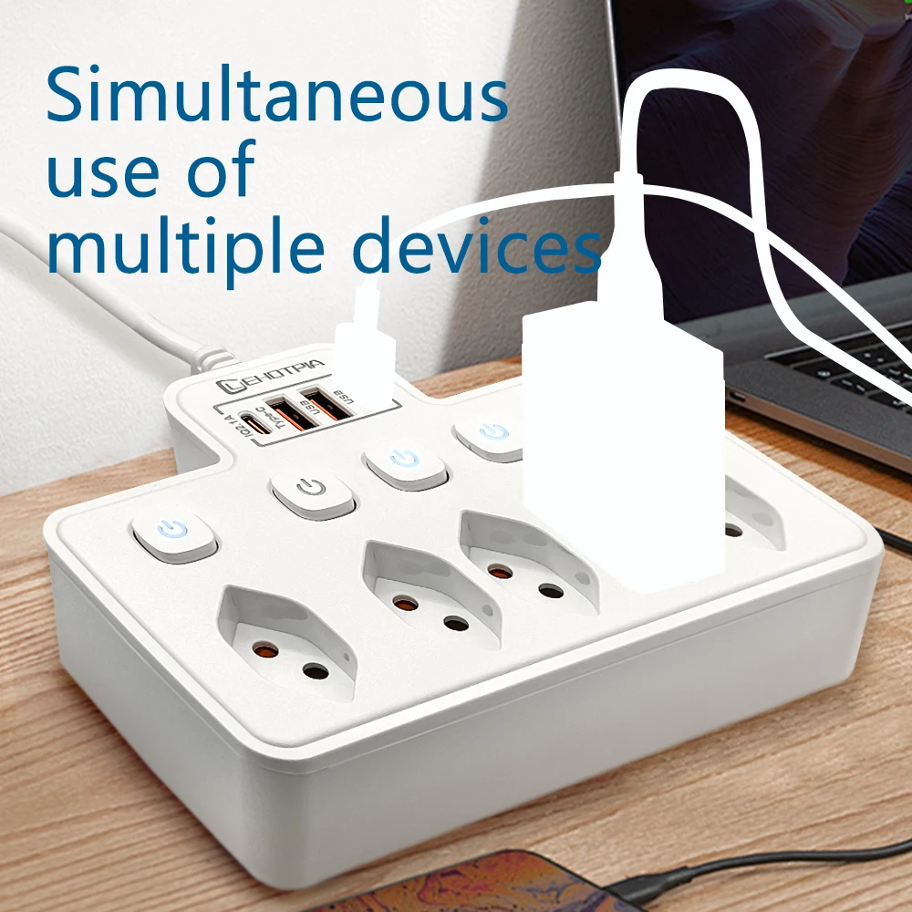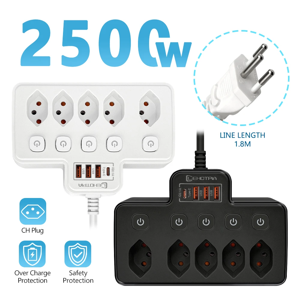 Comprar Enchufe suizo, toma de corriente de CA, interruptor separado, cable de extensión de 1,8 M con adaptador de red de cargador 3USB 1 tipo C