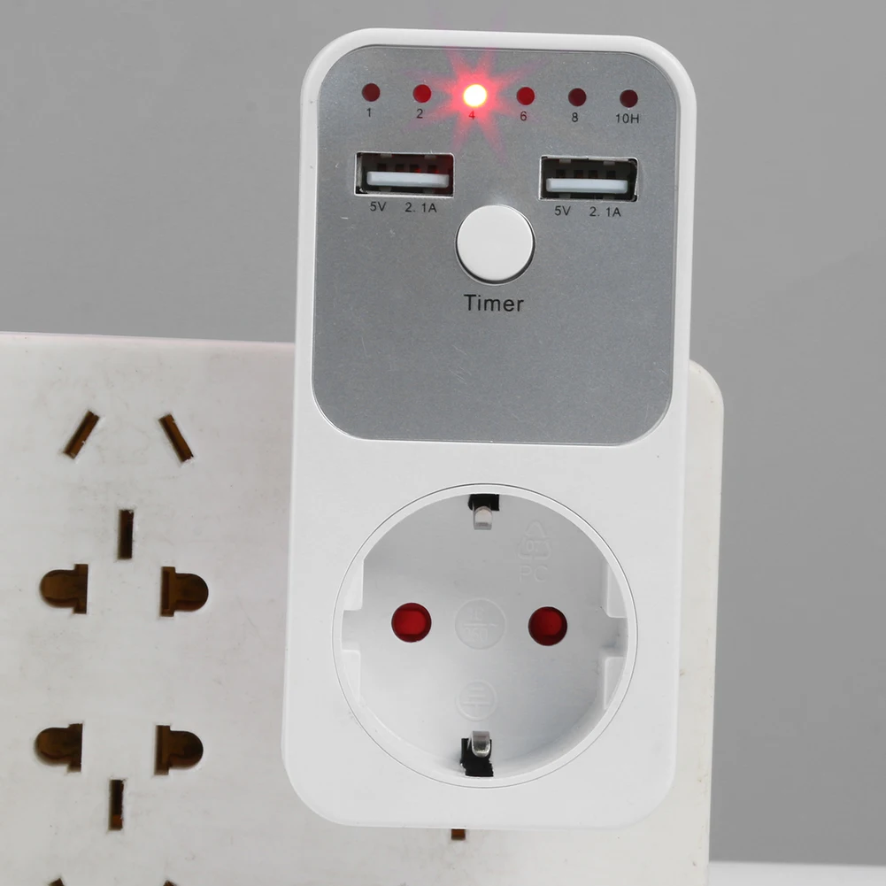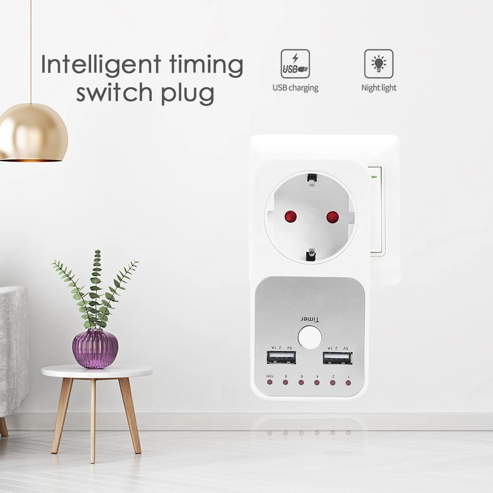Comprar Enchufe con temporizador de protección multifunción, controlador de salida de cuenta regresiva, USB Dual, UE, medidor de pared inteligente para el hogar, adaptador de cargador