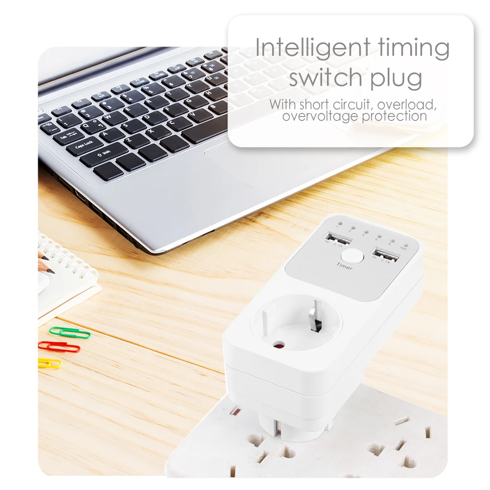 Comprar Enchufe con temporizador de protección multifunción, controlador de salida de cuenta regresiva, USB Dual, UE, medidor de pared inteligente para el hogar, adaptador de cargador
