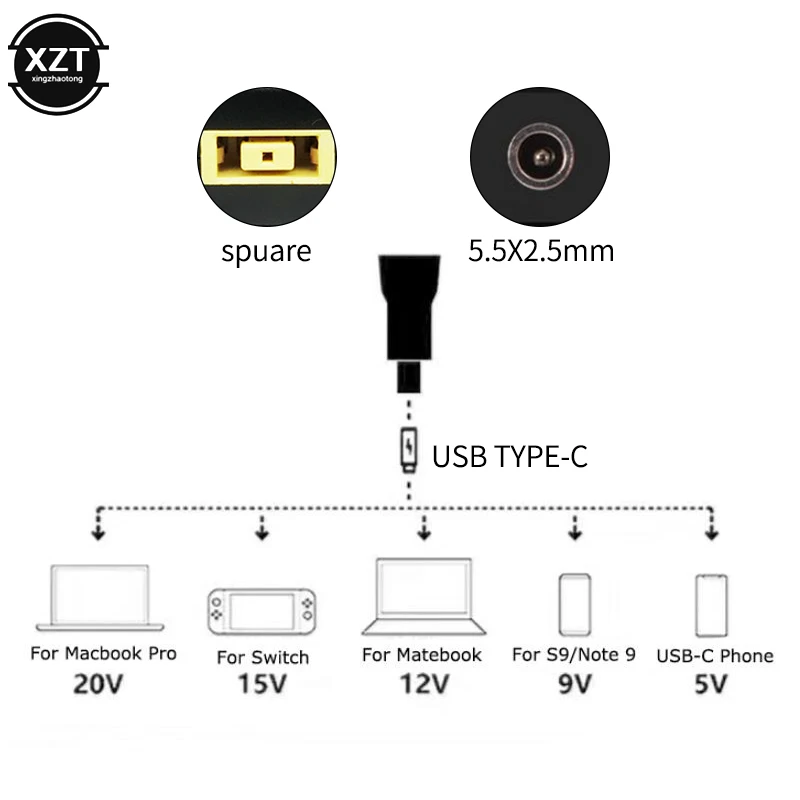 Tipo-C macho a cuadrado hembra DC o DC 5,5x2,5mm enchufe cargador convertidor adaptador conector para Lenovo Dell Hp Asus Laptop