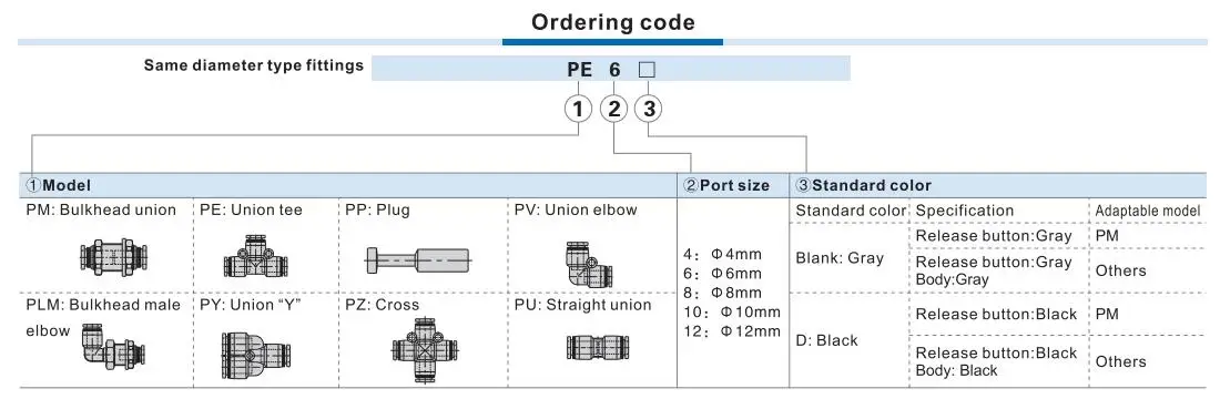 Enchufe de traquea PP de acoplamiento rápido neumático, intubación rápida, enchufe de traquea, enchufe de plástico PP4, PP6, PP8, PP10, PP12mm, 10 unidades por lote