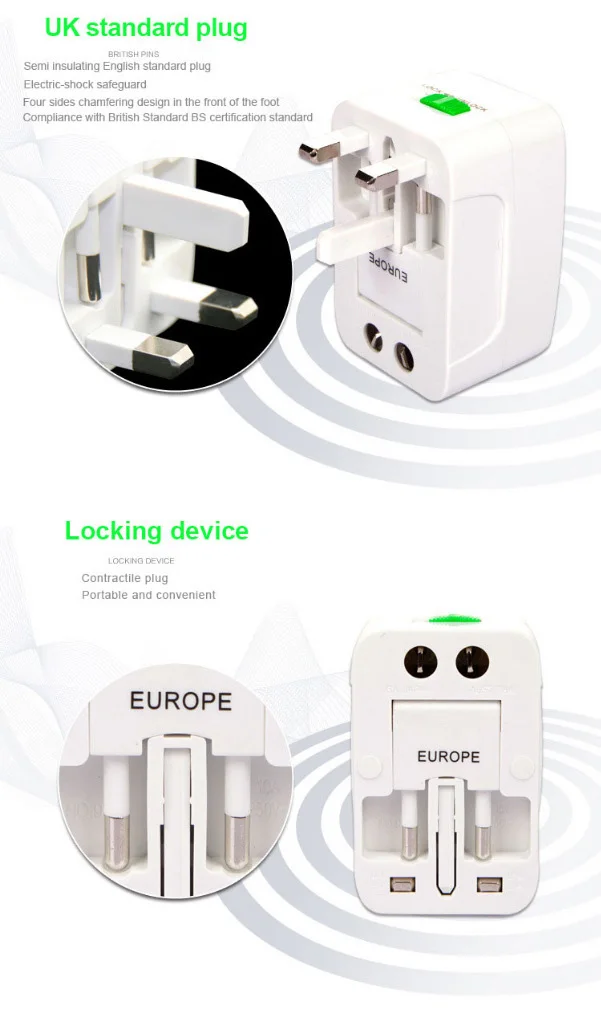 Adaptador de enchufe de corriente alterna universales para viajes a todo el mundo AU/UK/US/EU.