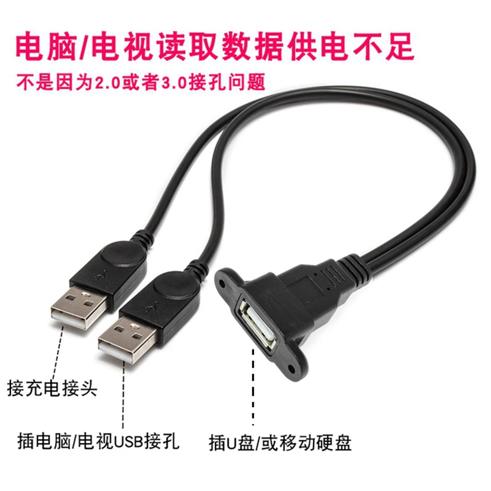 Comprar Enchufe USB 2,0 A USB hembra 2 doble fuente de alimentación Dual USB hembra Cable de extensión divisor HUB de carga para impresora 30CM