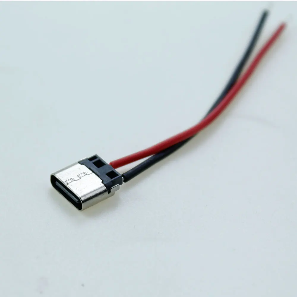 Comprar Enchufe USB hembra tipo c de alta corriente, Base de 2 pines soldado con cable, 3A, 1 piezas
