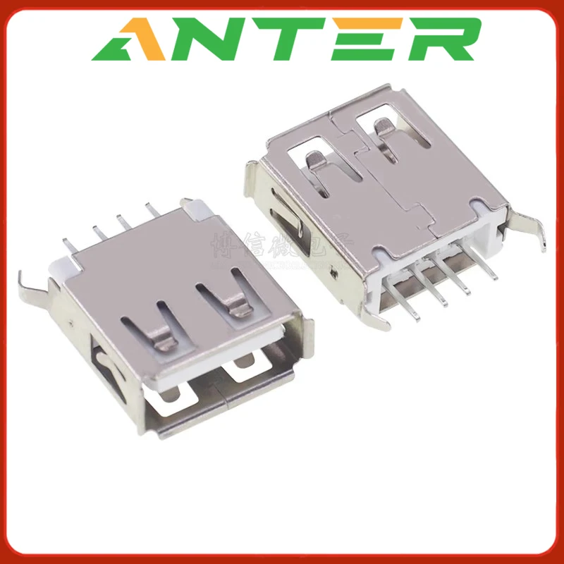 Comprar Enchufe USB tipo A hembra, 10 piezas, 180 grados, Vertical, 4 pines, interfaz USB, lados de la aguja curva