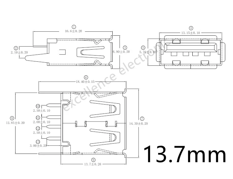Comprar Enchufe USB tipo A hembra Vertical, 180 grados, 4 pines, interfaz USB AF 13,7mm/15,0mm, 10 unidades