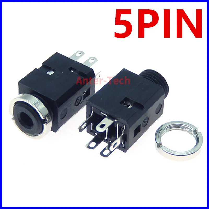 Comprar Enchufe Vertical estéreo hembra de 3 pines, 5 piezas, 3,5 MM, con tornillo 3,5, PJ-341 de Audio, 2 polos, agujero para auriculares